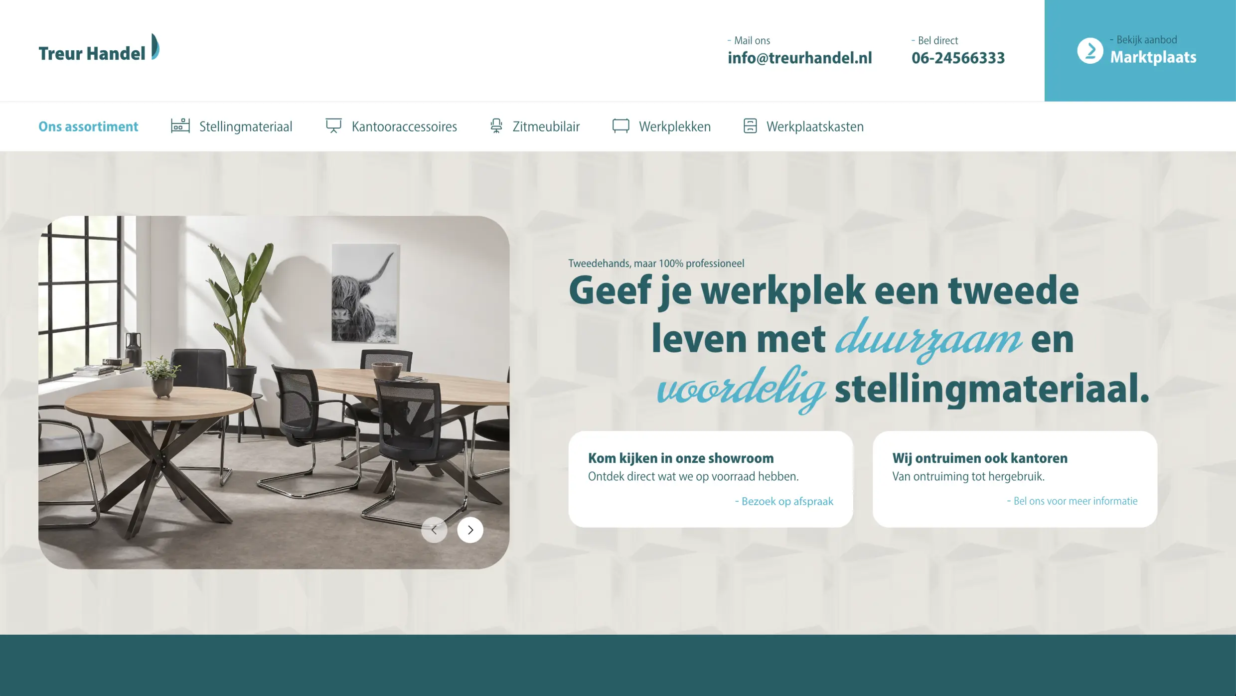 Treur Handel verkoopt gebruikt, refurbished en nieuw kantoormeubilair en magazijnstellingen. Degelijk, betaalbaar en direct uit voorraad leverbaar. Maar hun oude website? Die liet dat nauwelijks zien.
